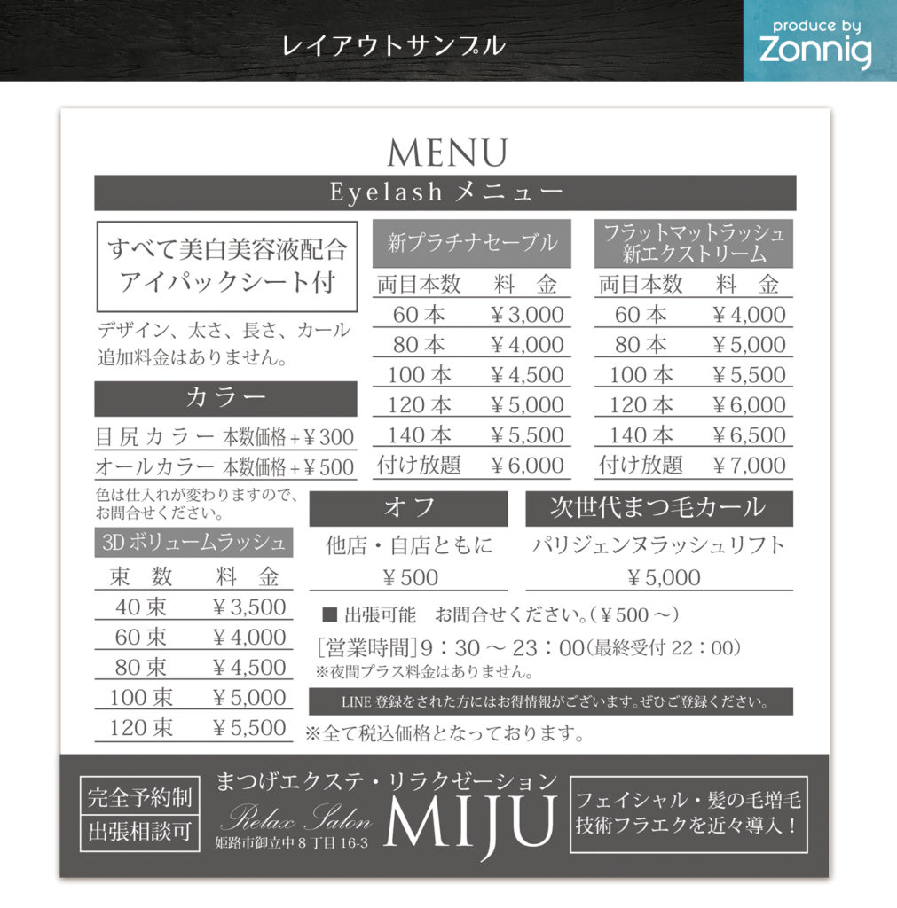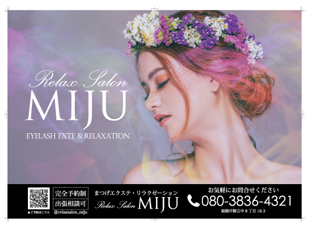 制作物をご覧くださるとわかりますように、まつ毛エクステやリラクゼーションをされてるMIJUさん。